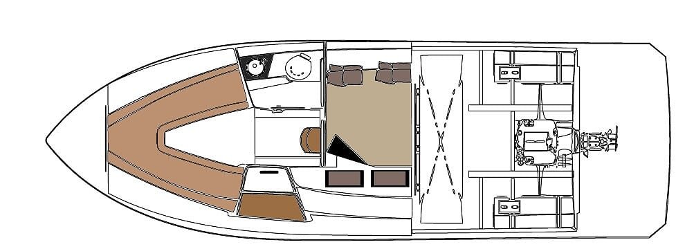 O cockpit chama atenção pelo mobiliário e acabamento interno com uso de madeira, inox, quartzo e tecidos antimofo próprios para a náutica. Outro destaque é a distribuição dos bancos, chaise e do sofá em semicírculo que favorece o bate-papo com convidados que além de ser um item de decoração. Possui ainda pia, porta copos e espaço para geladeira. A central de comando fica do lado direito e possui dois bancos para o piloto e acompanhante.