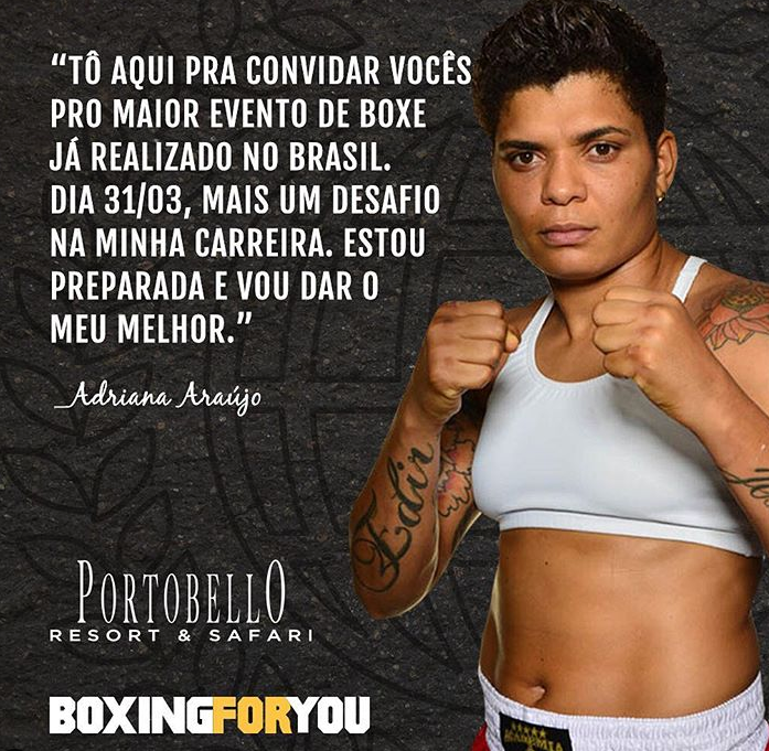 Adriana Araújo é medalhista de bronze em Londres 2012, natural de Salvador. A baiana começou no esporte por pura estética. Ela tem um cartel profissional de 2 vitórias em 2 lutas, todas no Boxing For You.