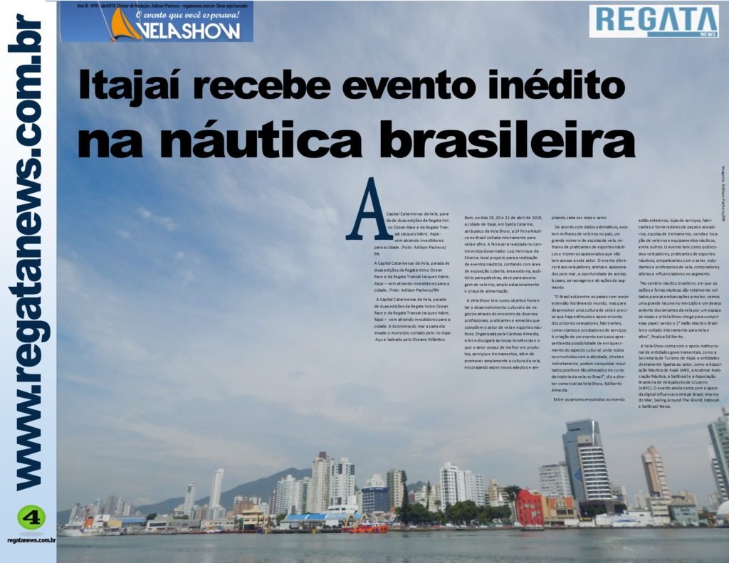 Itajai recebe a partir do dia 19 a Primeira Feira de Vela do Brasil. Leia mais na edição especial da Revista Digital Regata News