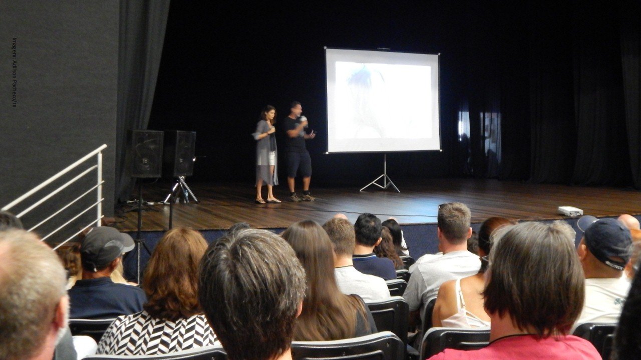 VelaShow – Mais de 500 pessoas na palestra dos velejadores do #SAL Adriano Plotzki e Aline Sena