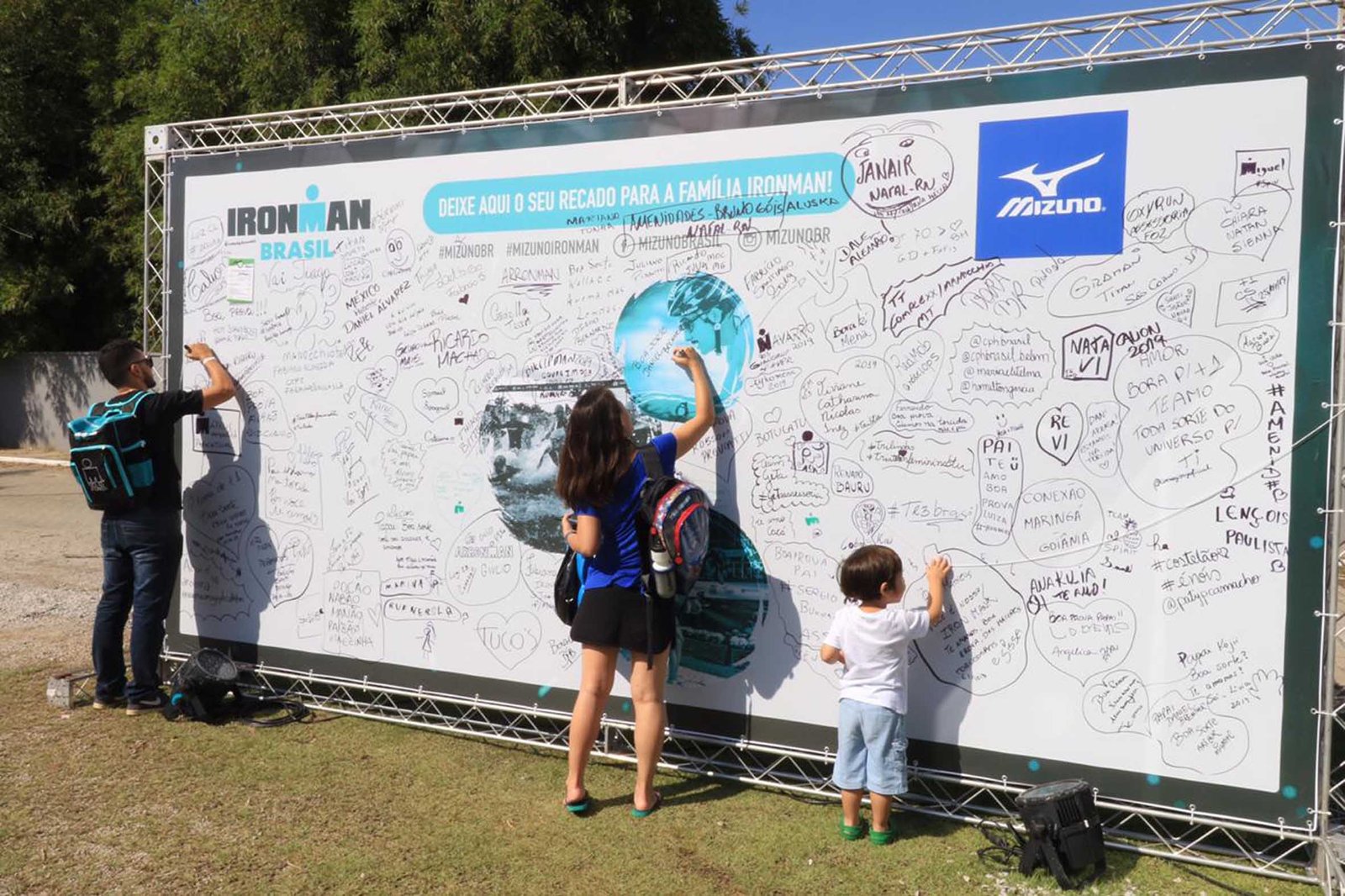 O público também entrou na onda das tattoos temporárias, backdrop para fotos e mural de mensagens à família Ironman. Outro ponto de interação foi a loja oficial Ironman com produtos Mizuno que levam a assinatura deste grande evento.