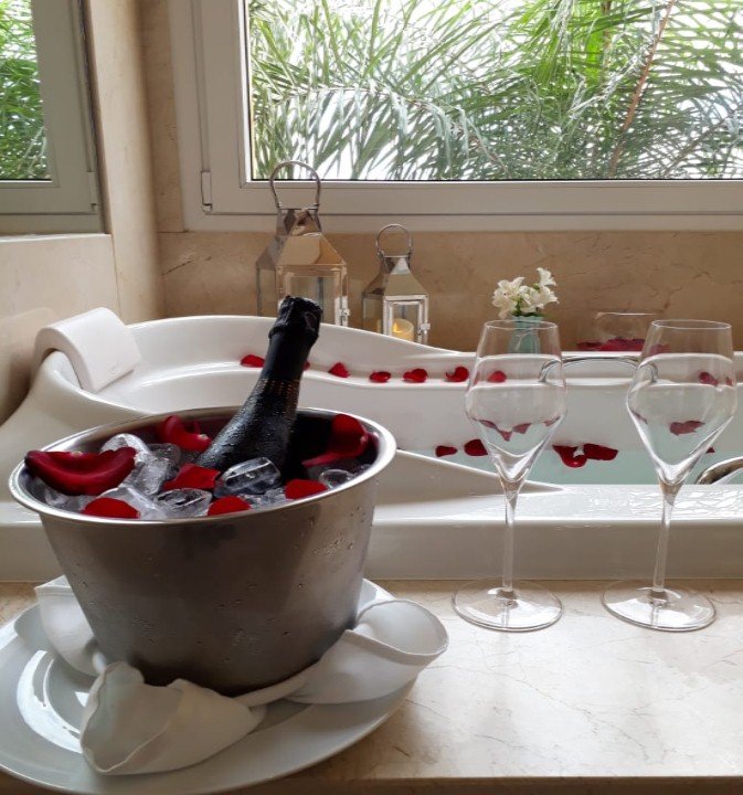 Os namorados poderão aproveitar toda comodidade e requinte com muita exclusividade. São apenas 32 suítes a partir de 90 m² com cama king size, roupas de cama e banho trussardi, produtos L’Occitane, banheira de hidromassagem e área de banho com dois chuveiros, além da tv de 55 polegadas, internet, cofre e toda mobília necessária para uma ótima estada.