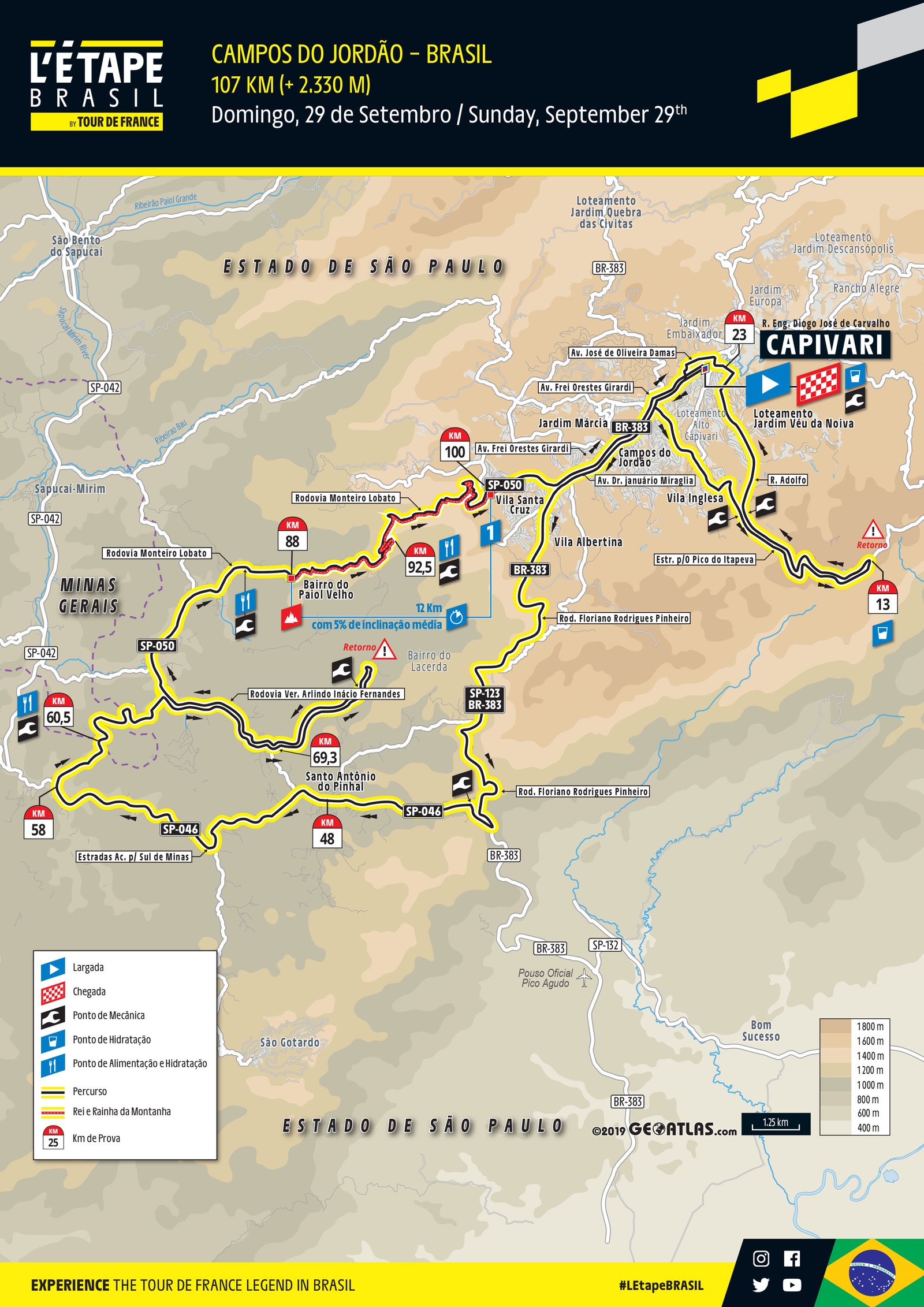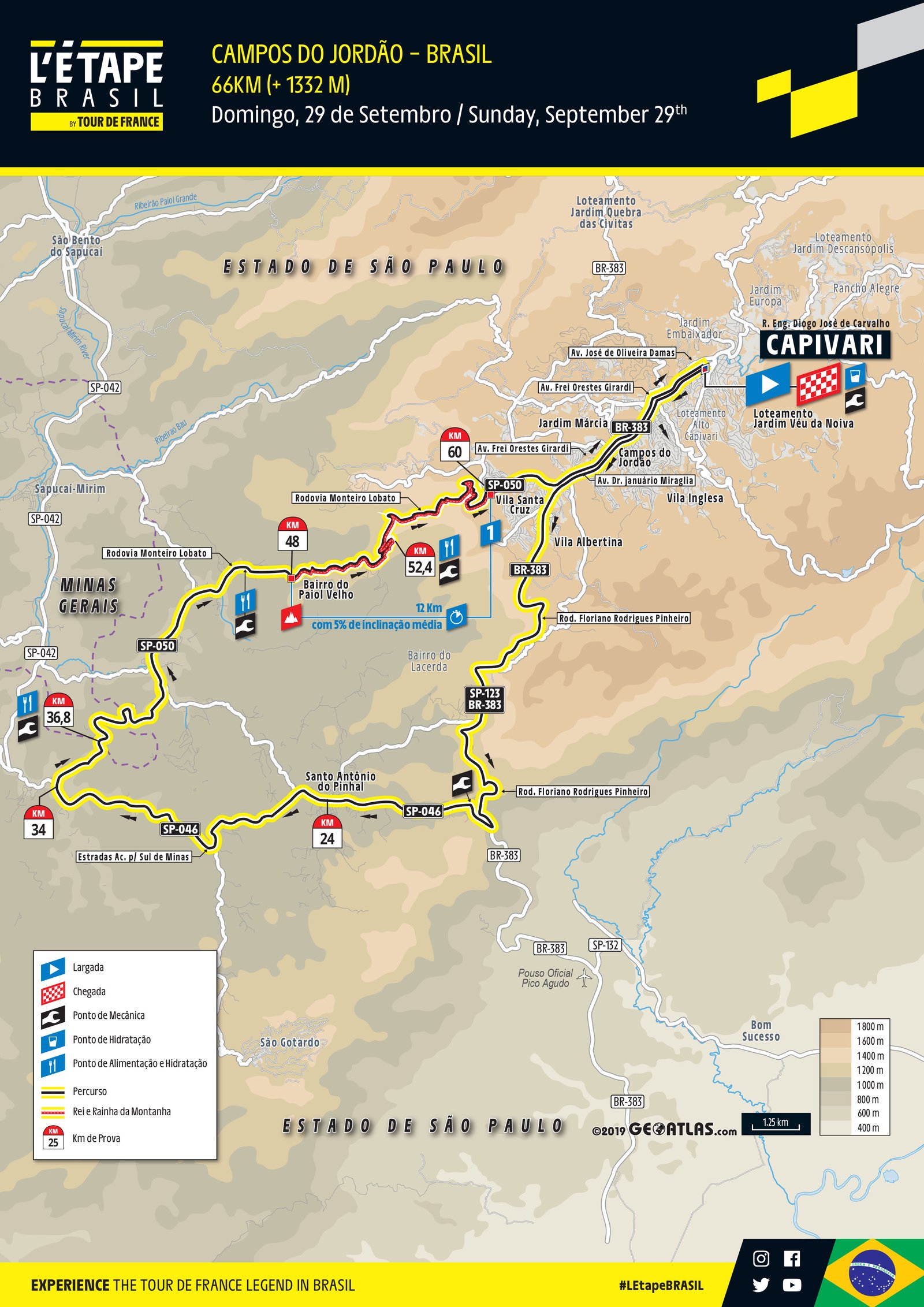O L’Étape Brasil by Le Tour de France também adotará o percurso 66 km, com altitude máxima 1.332.