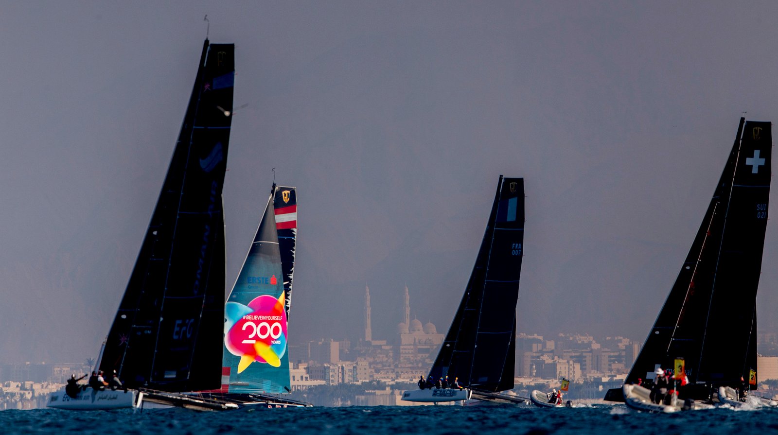 “It is great to be back in Oman, always sunny with some great wind,” said Alinghi helmsman Arnaud Psarofaghis. “It is the last event of the season, it is tight on points, so we will have a good fight with Oman Air – it will be all-in!”