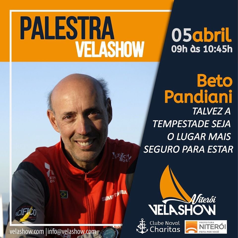 Beto Pandiani falará dessa aventura e de outras no VelaShow. “Faz tempo que eu não faço uma palestra aberta no Rio de Janeiro. Tenho muitos amigos e conhecidos da vela que nunca viram uma palestra minha.A verdade é que muita gente que me acompanha, segue as viagens e tudo mais, não tem uma noção exata do que aconteceu nessas sete viagens. Na palestra eu consigo fazer uma síntese precisa do que aconteceu, de como foram organizadas as viagens”, comenta Pandiani.