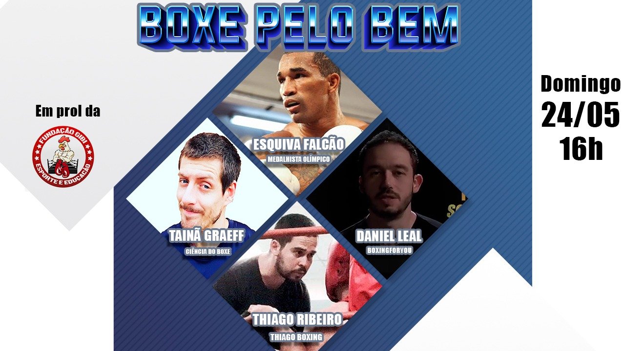 Tainâ Graeff, do Ciência do Boxe, Daniel Leal, do Round 13, e Thiago Ribeiro, do Thiago Boxing se unem ao medalhista olímpico na conversa beneficente.