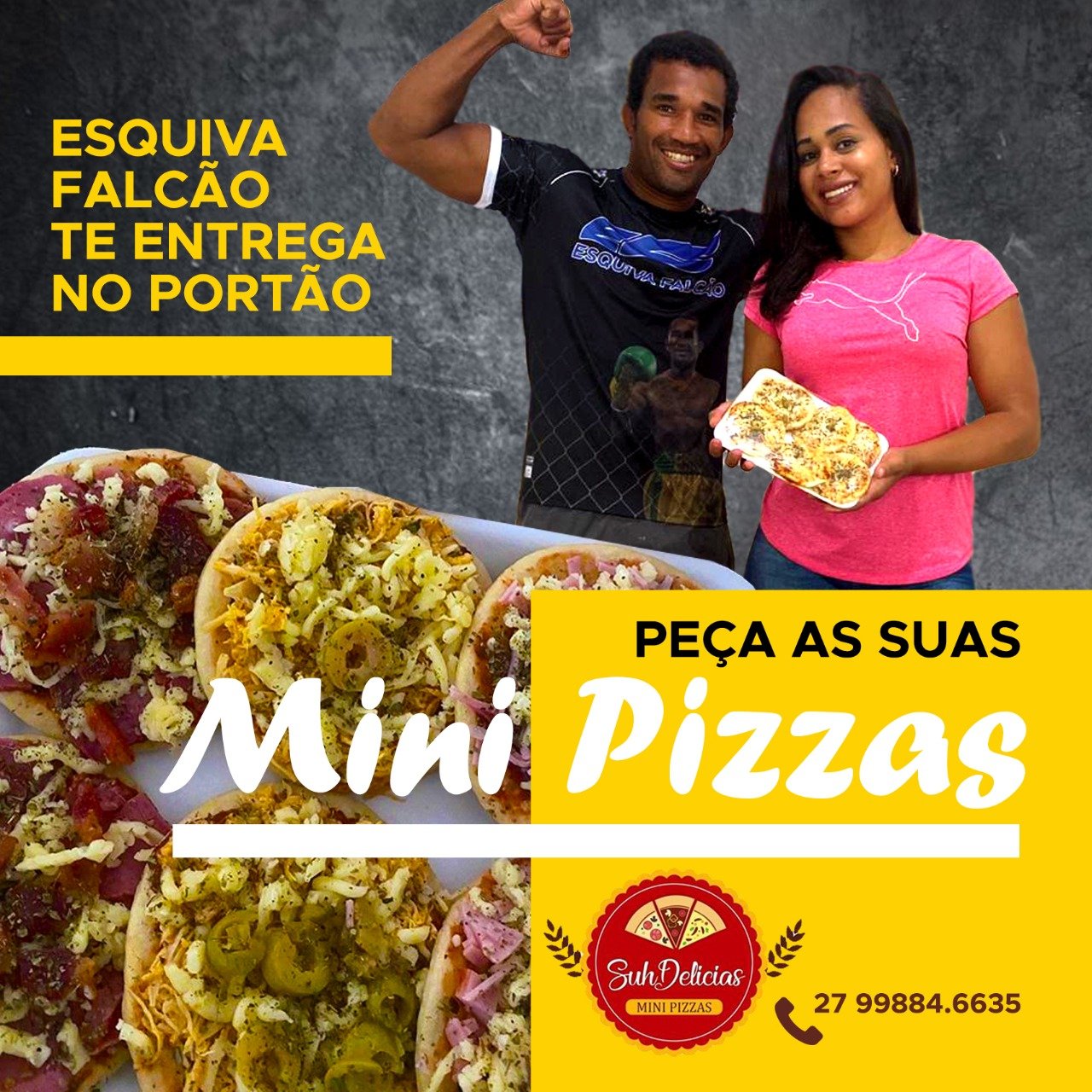 Os sabores das mini pizza da família Falcão são frango com queijo e azeitona , queijo e presunto, calabresa com cebola e calabresa com bacon.