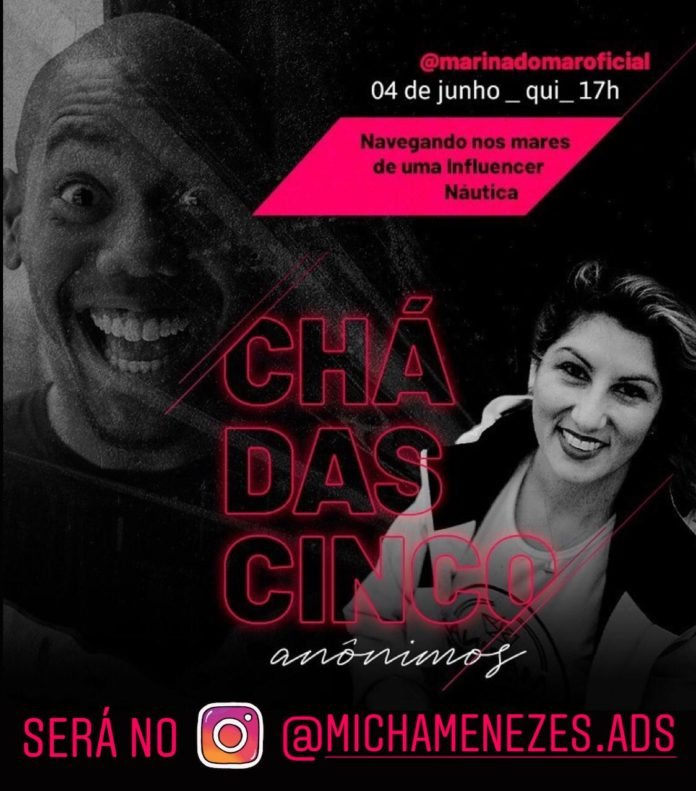 A Influencer Náutica Marina do Mar tem um encontro marcado, as 17h, nesta quinta, 04/06, no Chá das Cinco, a penúltima LIVE da série Anônimos no Instagram de Micha Menezes, um dos maiores players do marketing digital no Brasil.