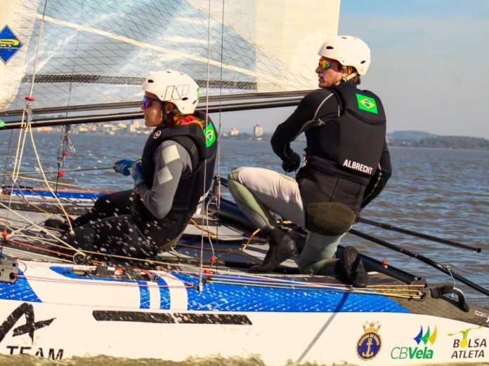 A dupla Olímpica com o atleta do Clube Veleiros do Sul, Samuel Albrecht e a carioca Gabriela Nicolino, retomou nesta semana em Porto Alegre os treinamentos preparatórios para os Jogos de Tóquio 2021. Após a pausa causada pela Covid-19, a volta às águas está acontecendo gradualmente para a readaptação dos atletas.