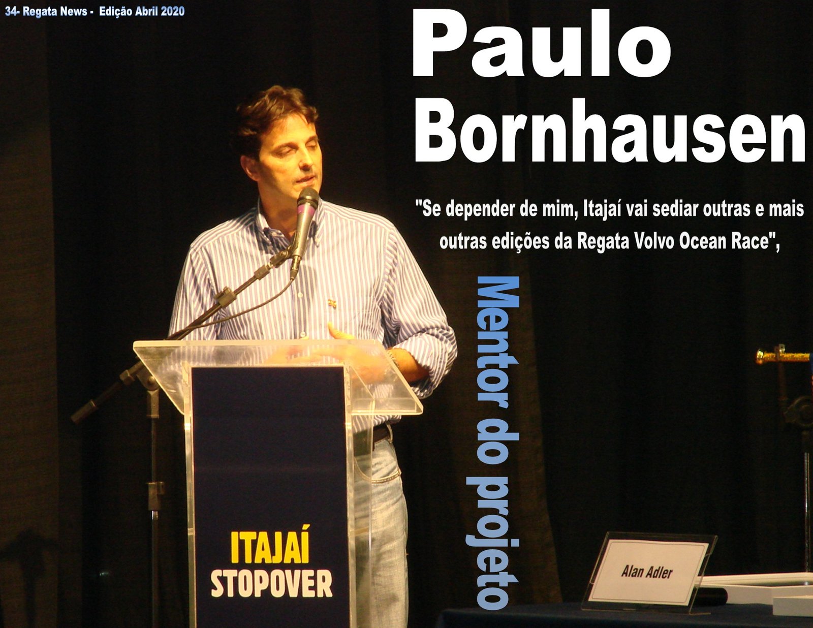Paulo Bornhausen -Alguns fatores abriram a oportunidade para a Volvo Ocean Race ter uma parada em Santa Catarina. Até então, o Rio de Janeiro era a cidade sede da competição no Brasil. Com a aproximação da Copa do Mundo de 2014 e das Olimpíadas de 2016, a Volvo Ocean Race se tornaria mais um evento no calendário carioca. Na visão dos organizadores, isso não estava a altura da maior regata volta ao mundo. Além disso, a reforma na Marina da Gloria, que receberia as embarcações, não ficaria pronta a tempo. A equipe da regata começou a busca por uma nova sede na América do Sul. Várias cidades foram procuradas: Montevidéu, Buenos Aires, Angra dos Reis, Salvador, São Sebastião – em São Paulo. Em Santa Catarina, Florianópolis foi a primeira cidade sondada, mas o projeto não foi adiante. Tínhamos ficado de fora da Copa, mas com muita determinação de mostrar que Santa Catarina teria capacidade de realização de um evento esportivo de magnitude internacional. O Governador Luís Henrique da Silveira comprou a ideia e garantiu o apoio do estado para realizar o evento. Então, na continuidade, surgiu a oportunidade de trazer o evento para Itajaí. Quando levei a ideia ao prefeito Jandir Bellini, ele pensou que fosse loucura, mas abraçou o projeto e fomos adiante.