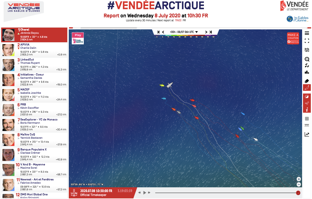 A regata em solitário Vendée Arctique Les Sables d’OLonne segue com disputa acirrada pela liderança.