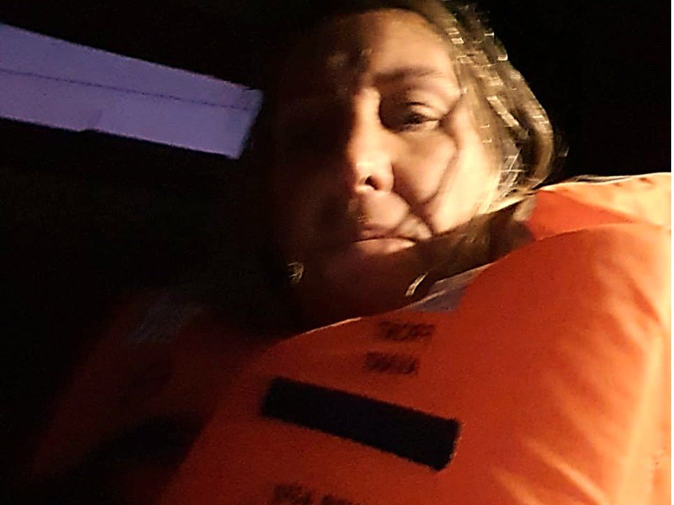 Cibele pedindo o colete salva-vidas!!! Cibele perguntou ao Capitão Copello se ele já tinha passado por uma situação daquela. Ele, no timão tentando se livrar das ondas e controlar o motor que falhava, disse que era uma situação tensa que não tinha passado por ela antes, com seu veleiro, apesar de décadas de experiência como comandante de navios rebocadores. Tadinha da Cibele!!!!.