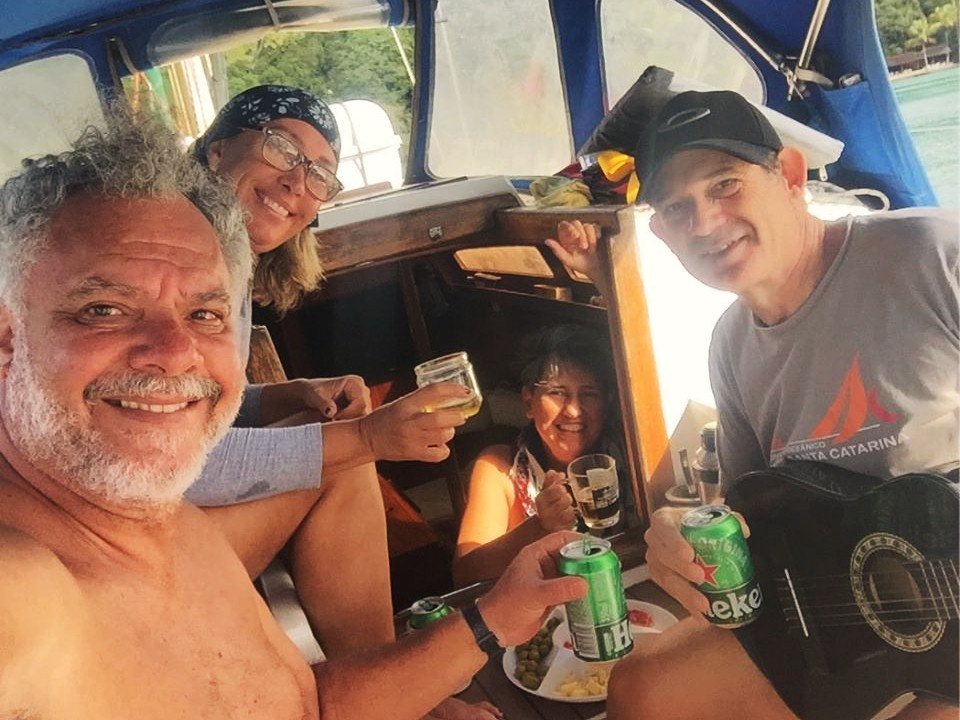 Ainda sobre a “porranca” de ontem. Estamos ancorados na Praia do Abrãozinho, em Ilha Grande. E hoje foi dia de domingo para a tripulação. Folga para todos. Relaxamento total. Aí que mora o perigo!!!! Confidências sempre surgem neste momento. Depois do café da manhã, sempre temos uma boa prosa no cokpit e hoje falamos, mais uma vez, sobre o que aprendemos na situação adversa, narrada no diário 05.
