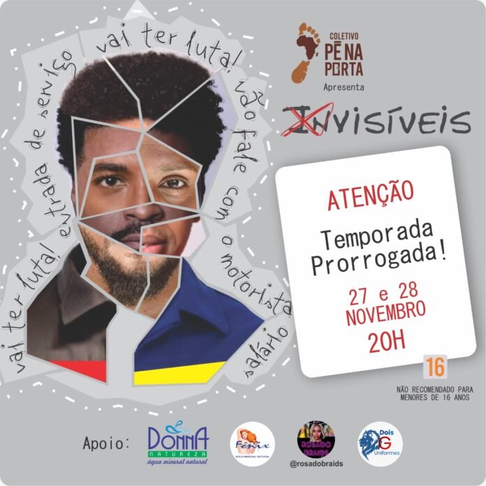 Sobre o Coletivo Pé na Porta: O coletivo Pé na Porta surgiu em 2016 com o intuito de criar dramaturgias em que o lugar do artista preto pudesse ser acessado em todas as suas potencialidades.