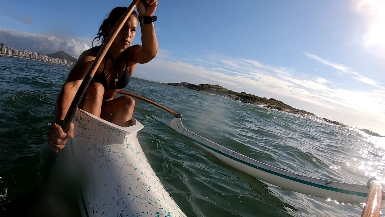 Bárbara Guimarães, também oceanógrafa, é instrutora de canoa havaiana há cinco anos, esporte que conheceu em um trote ecológico na época da universidade. Ela é professora da base da CPP Extreme em Vitória (ES) dando aulas no período da noite e já realizou diversas expedições de norte até o sul do Espírito Santo desde Regência até Marataízes , além de ter disputado a competições da conhecida Volta de Santo Amaro (SP) e da Volta de Ilhabela (SP) em revezamento com 12 mulheres em canoa de seis lugares. A preparação vem sendo forte: “Os treinos têm sido praticamente diários, estou remando 15km/dia, somando as três turmas que têm no clube. No final de semana faço uma remada de 20km sem parar em canoa individual (V1). Além disso faço Yoga e funcional regularmente. Minha alimentação durante a quarentena é vegetariana e faço jejum intermitente também. Tudo isso associado melhora a resistência física para essa expedição”, destacou Bárbara que destacou o aumento do número de mulheres no esporte. Além de Bárbara, a capixaba Dayana Gualberto, de Regência (ES), será outra mulher a participar da expedição: “O esporte vem ganhando popularidade, quantidade praticamente igual de homens e mulheres nas escolas. A vibe que vem dos alunos nas aulas e nos campeonatos estimulam com que as mulheres queiram fazer parte da canoa havaiana, isso é muito positivo”.