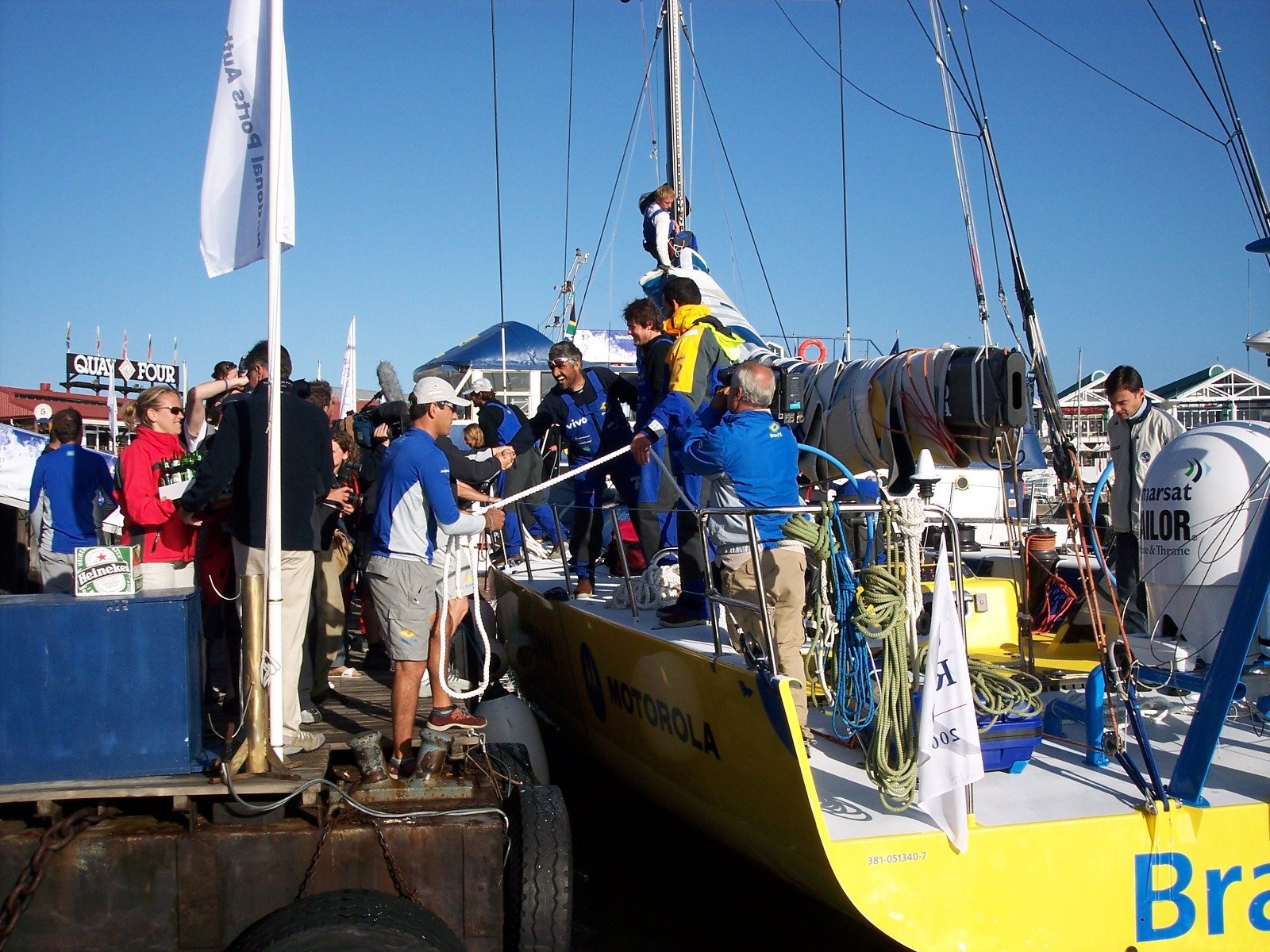 A chegada ao Rio de Janeiro foi a mais emocionante, mas deixo essa para comentar em março do o ano que vem. Capetown, para mim foi a perna mais importante, pois mostramos do que éramos capazes. Acreditava-se que o barco só se destacaria nas regatas in-shore, devido ao perfil do time. Mas, o barco navegou 6.400 nm (quase 12.000 km), saindo de Vigo, superou os “doldrums” montou Fernando de Noronha e chegou a África atrás apenas do barco Holanda 1. Em outras palavras cruzou o Atlântico duas vezes, saindo do inverno europeu, entrando no calor tropical, e, terminando no verão africano. Nessa etapa teve barco favorito que abandonou a regata e chegou à Cidade de avião, outro que também abandonou e chegou no porto de navio, um outro que nem largou, e um que registrou um incêndio a bordo, enquanto o Brasil 1 chegava pleno! Calamos a boca de muita gente!