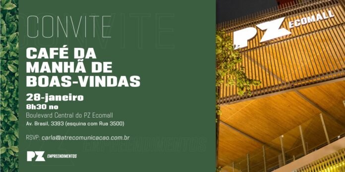 Atre Comunicação, de Florianópolis. Convidando para uma Café da Manhã de Boas-Viondas – na quinta -28/ no Boulevard Central da PZ Ecomall em Balneário Camboriú.