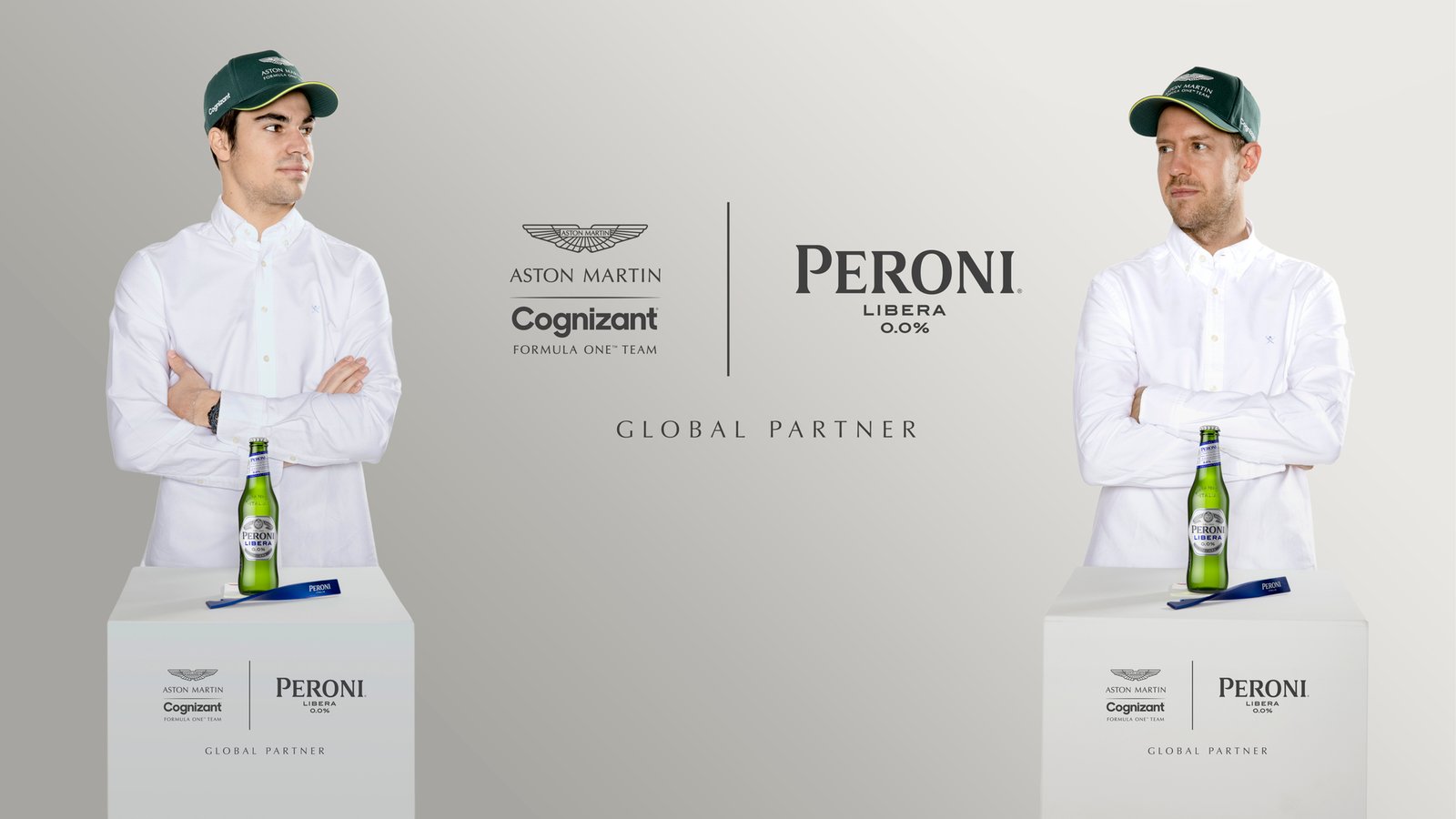 O logotipo Peroni Libera 0,0% terá um lugar de destaque nos carros da Aston Martin Cognizant Formula One Team durante a temporada de 2021, além dos uniformes da equipe.