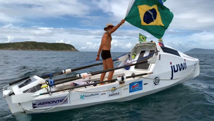 O navegador de 59 anos fez o percurso da Cidade do Cabo, na África do Sul, até Cabo Frio, no Brasil, em 70 dias, numa distância total de 7.200km ou 4.000 milhas náuticas pelo Oceano Atlântico.