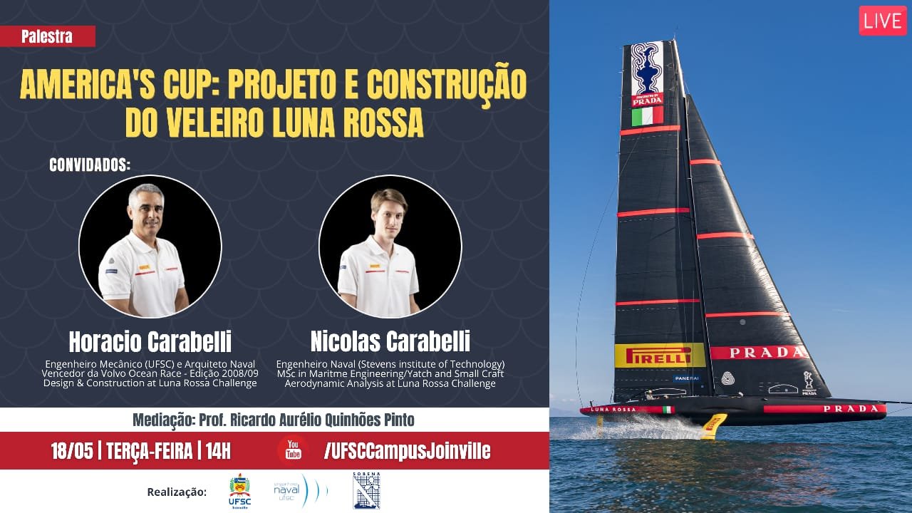 O curso de Engenharia Naval, da UFSC Joinville, em parceria com a Sociedade Brasileira de Engenharia Naval (Sobena), realiza na próxima terça-feira, dia 18 de maio às 14h, a live “America’s Cup: Projeto e Construção do veleiro Luna Rossa”.
