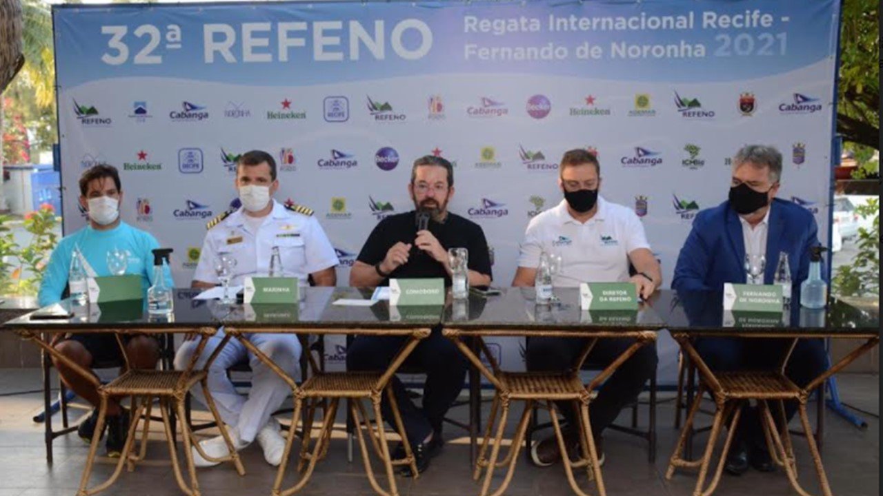 A 32ª Regata Internacional Recife-Fernando de Noronha foi apresentada em coletiva de imprensa, realizada nesta quarta-feira (22/09), no Restaurante Chicama – Cabanga Iate Clube do Recife. Participaram da entrevista o Comodoro do Cabanga, Paulo Perez, o diretor da Refeno, Leonides Alves, o diretor técnico da Refeno, Edival Júnior, o diretor de projetos especiais (representando Noronha), Daniel Bezerra e o capitão da Capitania de Portos de Pernambuco, Márcio Rebello.