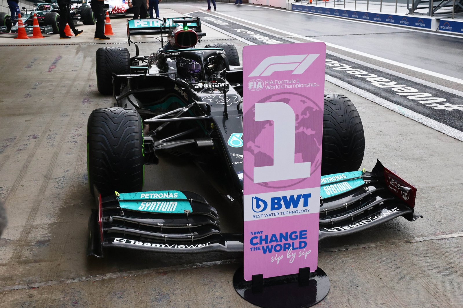 “Então é bom nos ver unidos novamente e, obviamente, a equipe fez uma grande chamada bem no final. Eu não queria deixar Lando ir e é claro que eu não sabia o que o tempo estava fazendo, mas sou incrivelmente grato a todos esses homens e mulheres que estão aqui e de volta à fábrica porque, uau, 100.” – Lewis Hamilton, Mercedes