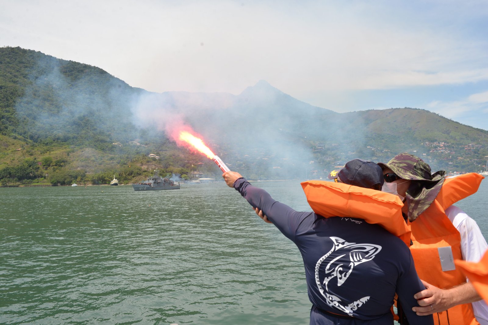 Foram realizadas também a sinalização com pirotécnicos e a demonstração de resgate de náufrago por aeronave, assim como ações de sobrevivência, o que fez com que as aulas fossem além da teoria.