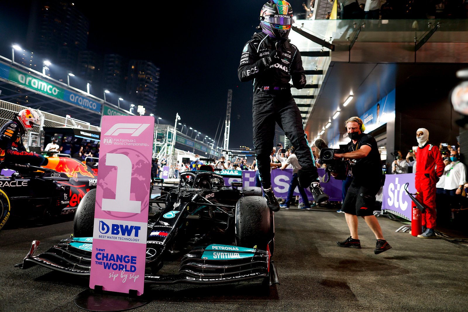 Lewis está empatado com Max Verstappen (369,5 pontos) no Campeonato de Pilotos, com Valtteri reivindicando uma P3 definitiva para a temporada (218 pontos) aqui em Jeddah.