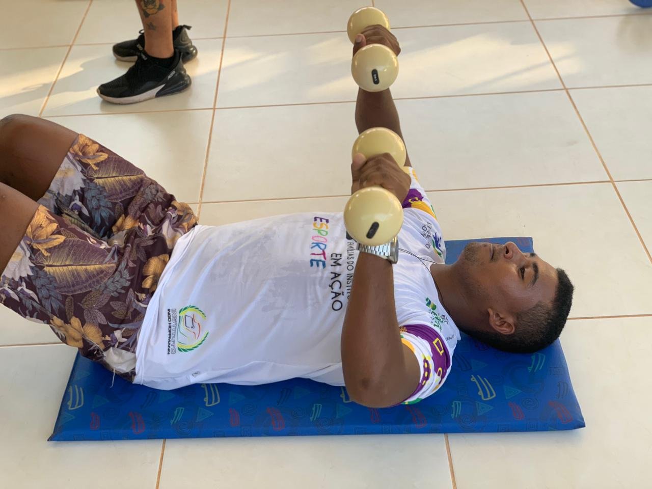 O espaço conta com infraestrutura que oferece esteiras, bicicletas ergométricas, halteres e bola de pilates, além de profissional que acompanha e instrui as atividades.