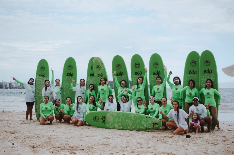 “Nós chegamos, conhecemos essas mulheres que já surfam, que já têm essa familiaridade com o mar, mas que não necessariamente são instrutoras. Passamos, então, o treinamento da metodologia Águas de Gaia, e a ideia é que elas continuem oferecendo as aulas e as vivências mesmo depois que nós formos embora”, diz Cristiane. Desde o seu início, o projeto já ofereceu 44 vivências que atenderam 295 mulheres. O Águas de Gaia é realizado pelo Instituto Incentivar, com patrocínio do Instituto EDP, organização que coordena as ações socioambientais da EDP.