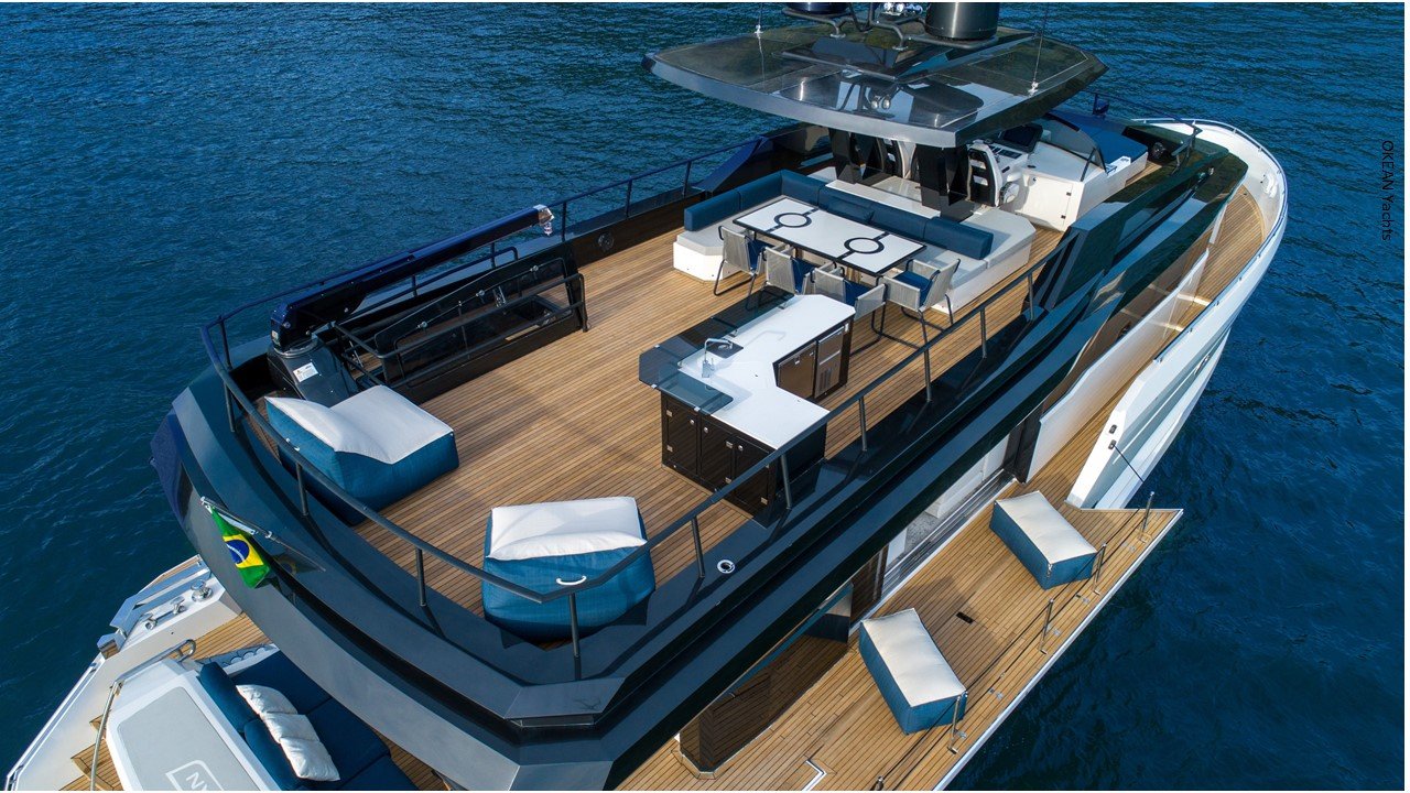 Com 24,2 metros de comprimento, o modelo OKEAN 80, da marca 100% brasileira OKEAN Yachts, será exposto no Miami International Boat Show que segue até domingo (20), nos Estados Unidos.