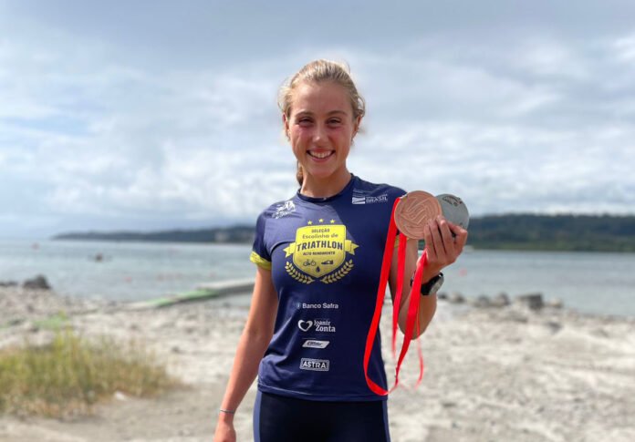 Um dos destaques da nova geração do triathlon no Brasil, Gabrielle Lemes conquistou a medalha de bronze na elite do Sul-Americano de Triathlon, neste domingo (20), em Villarrica, Chile. Gabrielle fechou a disputa com 02h10min33. A campeã foi a também brasileira Luisa Baptista (02h01min01), com a chilena Macarena Salazar (02h08min13) em segundo.
