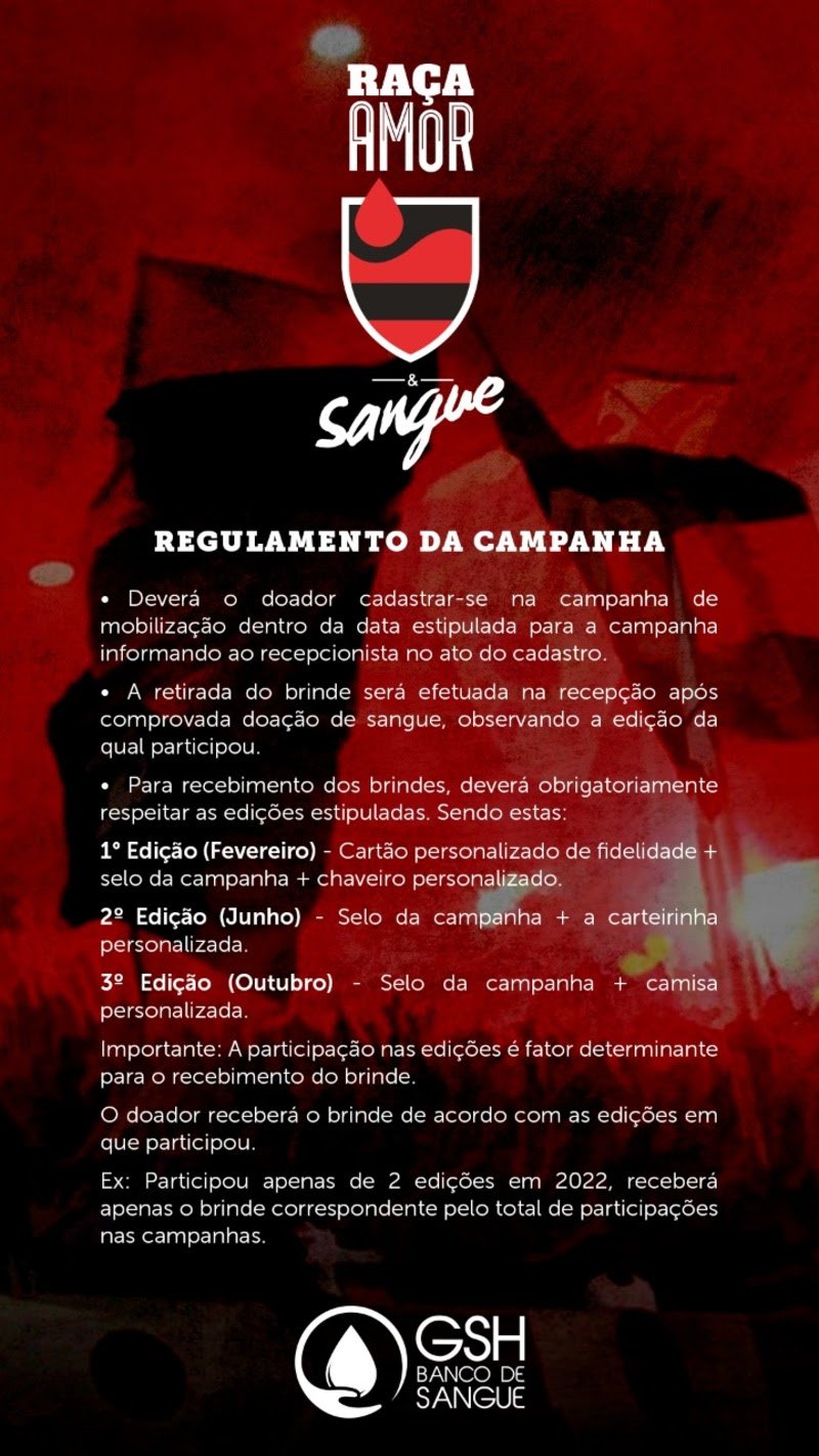 Com o tema “Somos uma nação. Não importa onde esteja, sempre estarei contigo”, a campanha pretende mobilizar torcedores do time, simpatizantes e também amantes de esportes para que sensibilizem sobre a importância da doação de sangue. Os participantes receberão brindes alusivos à campanha (vide regulamento).