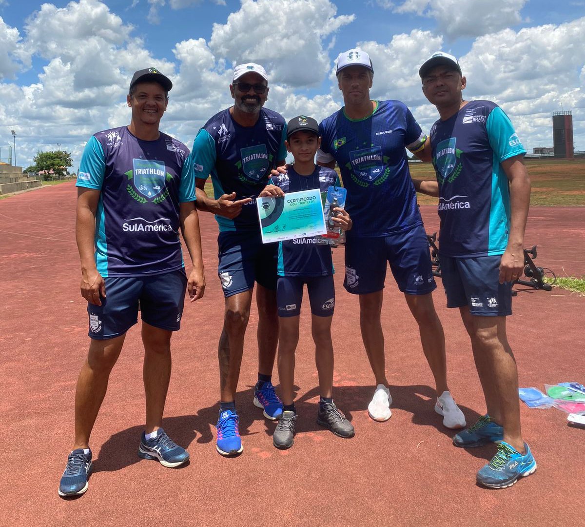Um treino especial reuniu o triatleta olímpico Juraci Moreira e os mais novos triatletas mirins de Ceilândia, nesta quarta-feira (9). O evento marcou o primeiro ano da Escolinha de Triathlon Formando Campeões na região, com entrega de certificados para as crianças.