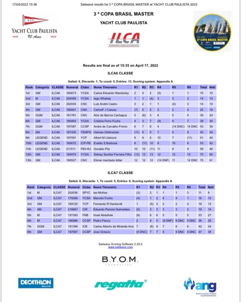 Vale destacar que os três primeiros da ILCA 6 empataram em pontos no cômputo geral, sendo o desempate decidido pelos critérios estabelecidos pela World Sailing.
