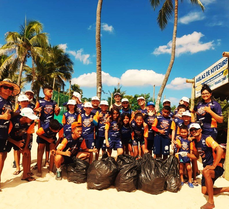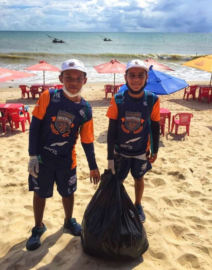 “A proposta era coletar o máximo de material que pudéssemos. À medida que recolhemos o lixo, fomos explicando aos alunos sobre o tempo de decomposição de cada produto. Encontramos muitas tampinhas de garrafa de alumínio, e uma grande quantidade de bitucas de cigarro”, contou a professora Isabelle Ribeiro, do núcleo de Caucaia da Escolinha Aeris de Triathlon Formando Campeões. “Eles curtiram muito, se interessaram e até fizeram uma disputa para ver quem coletava mais lixo. No final, demos um mergulho no mar.”