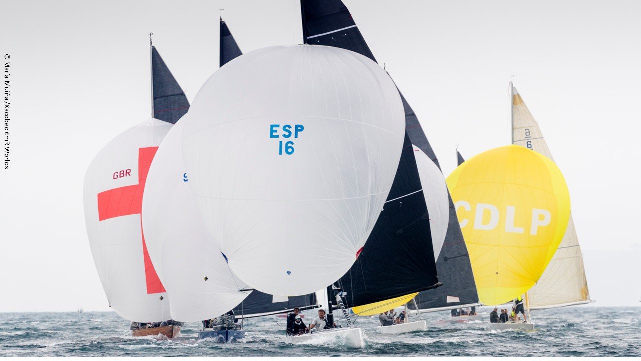 With the pressure on to catch up the schedule to secure the championship, which requires a minimum of five races, the Real Club Nautico de Sanxenxo race committee’s decision to bring the start of racing forward paid off and by 11:30 racing was underway in a building south westerly. Skies were initially overcast with misty low cloud and the wind built to around 12-15 knots, but then the sun began trying to burn off the cloud and when it did the wind started to shift left and drop, but then the cloud would roll back in again and the wind would go right and increased. Figuring out whether the sun was in the ascendance so left would pay or the clouds were winning so right was right was the key to success.