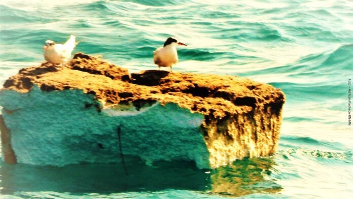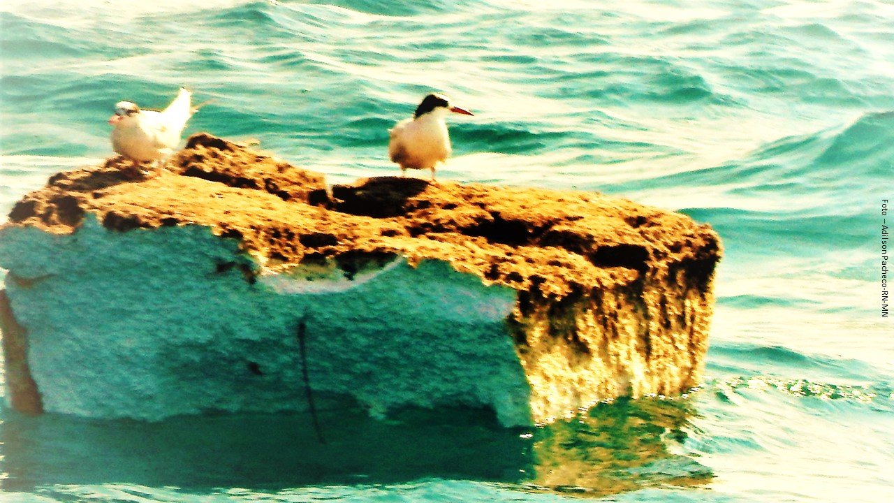 Aves sobre um isopor, imagem registrada em Ilhabela – Foto Adilson Pacheco – RN-MN