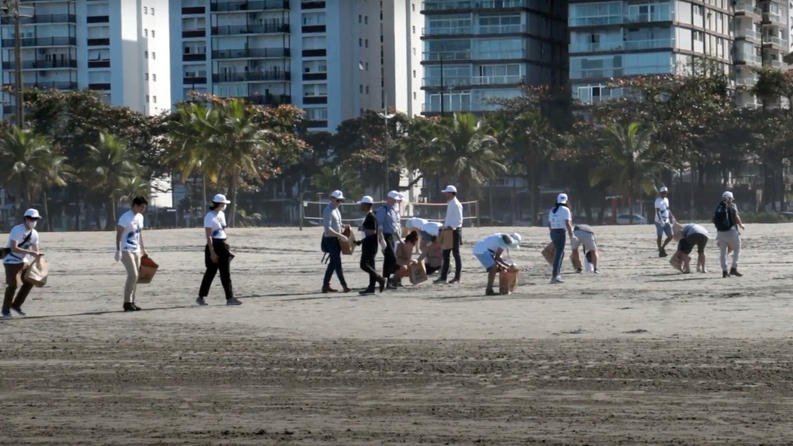Durante a XIV Conferência Anual da Rede de Cidades Criativas da Unesco, na cidade de Santos (SP), a organização do evento internacional fez uma ação de limpeza e conscientização das praias da cidade.