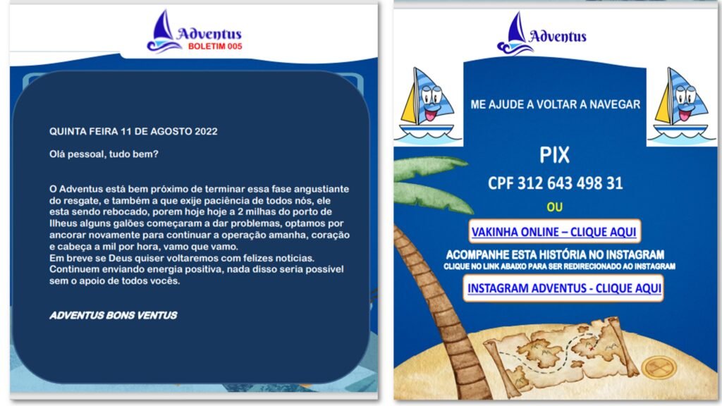 Vela 43 metros de profundidade – Adventus é resgatado depois de uma baleia bater no o veleiro Por Adilson Pacheco - 13 de agosto de 2022 0 432 FacebookTwitterPinterestWhatsApp