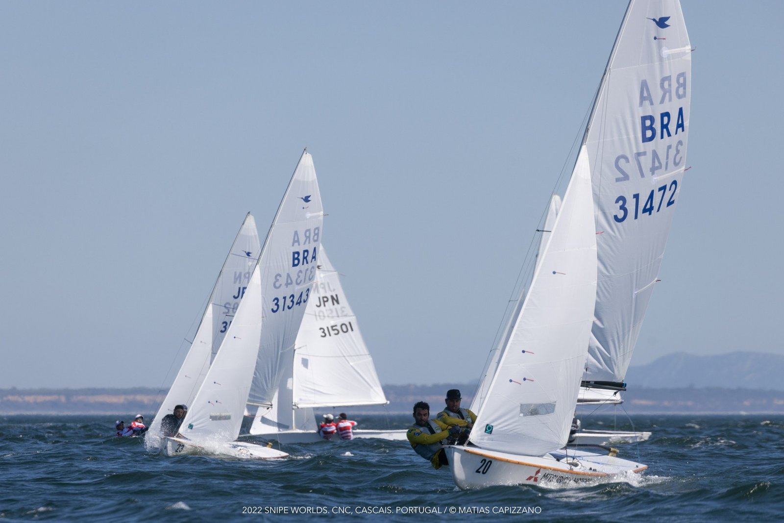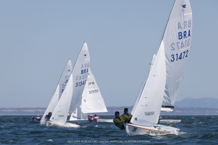 Os brasileiros Juninho de Jesus e Henrique Wisneiwski tiveram o melhor desempenho nas regatas de estreia do Mundial de Snipe 2022, em Cascais, Portugal.