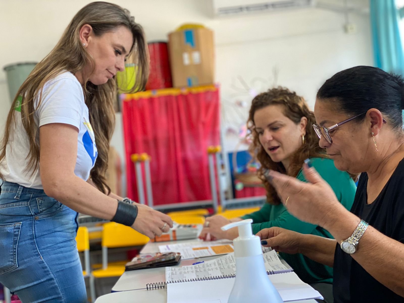 Com as filhas, Mariana e Manuela, deputada Paulinha vota de manhã em Bombinhas
