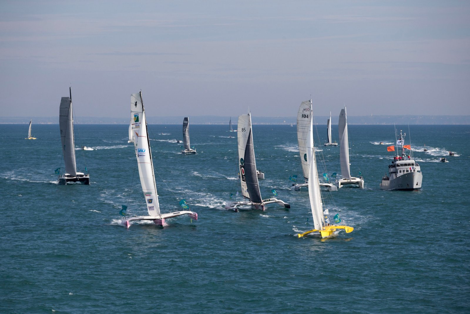 Also in the Rhum Multi class are Marc Guillemot (Metarom MG5), Halvard Mabire (GDD) and Gwen Chapalain (Guyader – Savéol). Roland Jourdain, twice winner of the Route du Rhum (2006 and 2010), competes with a catamaran launched only this year. His boat, We Explore, is made of 50% flax fiber, a sustainable, eco-friendly innovation. Etienne Hochedé will be extra pleased to make it to the start after capsizing his trimaran PIR2 near Cornwall in July. He has worked night and day to be ready on time.
