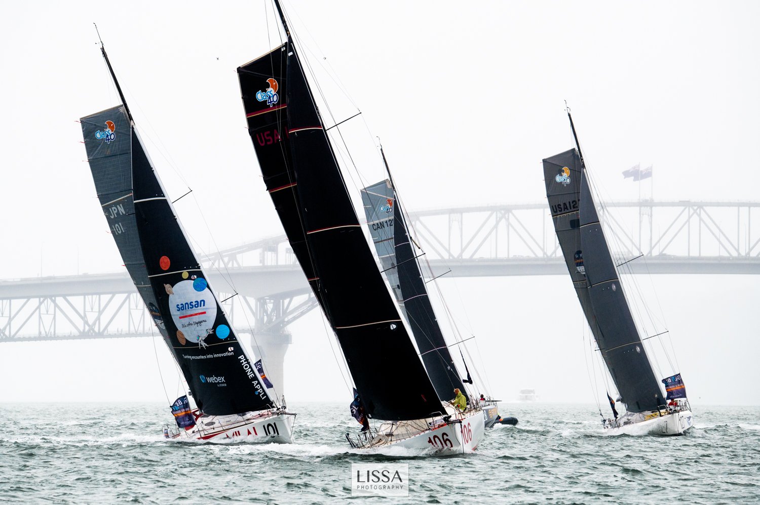 Os cinco barcos partiram do Royal New Zealand Yacht Squadron para 2.300 milhas até a Polinésia Francesa.