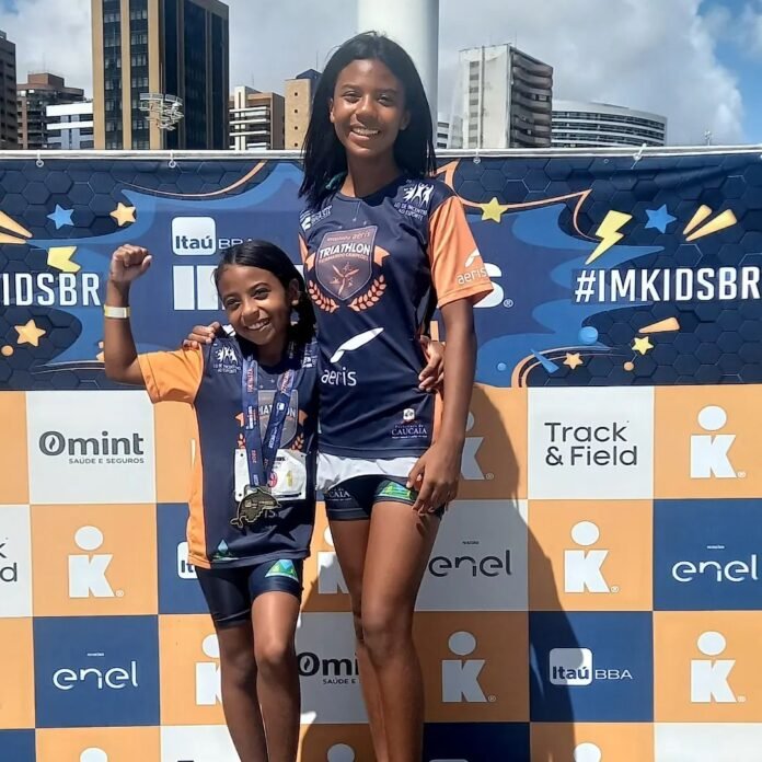 “As crianças foram bem demais. Me emocionei porque vi muitos pais de alunos na prova, torcendo, apoiando”, celebrou o professor Giovanni Morano, do núcleo Aquiraz da Escolinha de Triathlon.