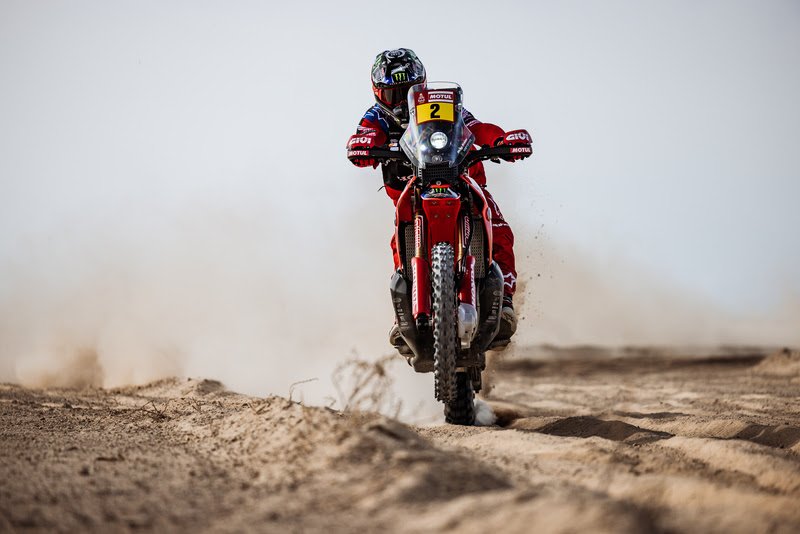 Acelerando a moto Honda CRF 450 Rally, o vencedor do Dakar em 2020 Ricky Brabec foi o piloto mais bem colocado da equipe no prólogo, em décimo lugar, e poderá escolher sua posição para a largada da primeira etapa. Pablo Quintanilla (11º colocado), Adrien Van Beveren (16º) e José Ignacio “Nacho” Cornejo (27º) também disputaram a tomada de tempos.