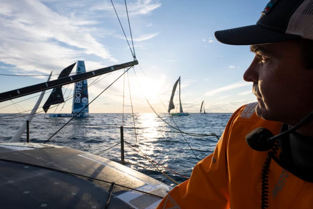 Há muito risco envolvido com a vela de curta distância a 28 nós esquivando-se e tecendo espectadores e outros IMOCAs com papel alumínio!