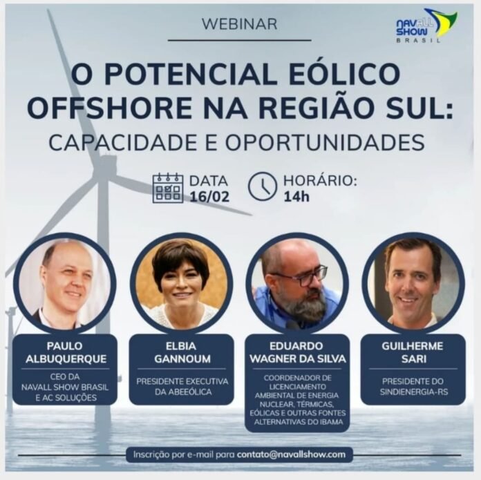 No próximo dia 16 de fevereiro  será realizada a webinar sobre o Potencial Eólico Offshore na Região Sul.