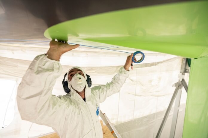 Após a colagem da espuma sanduíche, a área aberta será novamente laminada com fibras de carbono na sexta-feira de manhã. Os trabalhos de enchimento, lixamento e pintura devem ser concluídos até domingo, antes que o barco possa retornar à água na terça-feira da próxima semana.