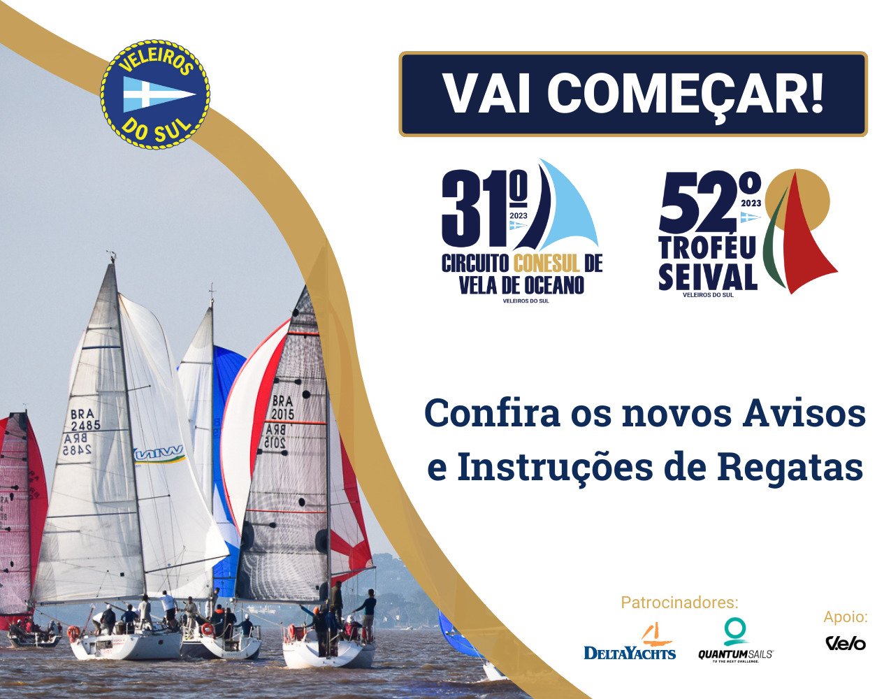 Vai começar! Neste sábado (16), a partir das 11h, serão dadas as largadas para a 52ª Regata Troféu Seival, 33ª Regata Troféu Farroupilha e 25º Velejaço Farroupilha, abrindo a 31ª edição do Circuito Conesul de Vela de Oceano.
